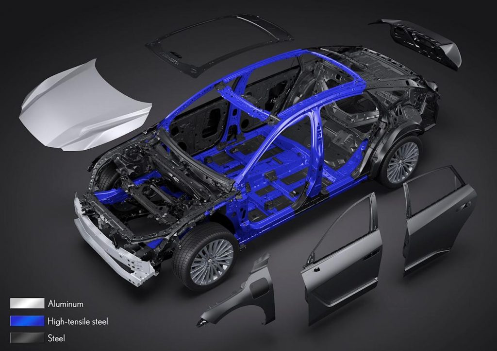 • Lexus ES Gen8 được xây dựng trên nền tảng khung gầm TNGA GA-K (Global Architecture-K) thế hệ mới được thiết kế lại, phát triển đặc biệt để phù hợp với cả hệ truyền động HEV và BEV.
